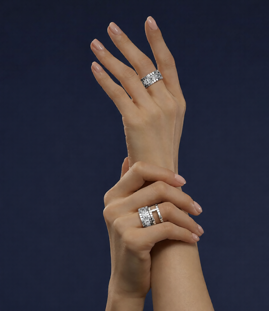 We took the iconic aesthetic of the Chopard Ice Cube and fused it with the intelligence of the Oura Ring and the identity of BM. The result is a unique, elegant, and functional piece that combines Chopard’s high jewelry, BM’s scientific essence, and contemporary technology.